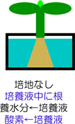 - 培地として土を用いずに、作物の生育に必要な養水分を、水に肥料を溶かした液状肥料(培養液)として与えて栽培する方法.